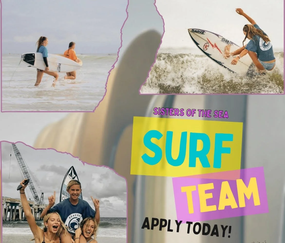 We’re thrilled to announce the launch of the very first SOS surf team! The team will include up to 12 women and girls (ages 14 and up) competing in local and Southeastern competitions. Longtime SOS member and amazing surfer Chrissy Bush will be coaching the team. Apply today; applications close March 21st!