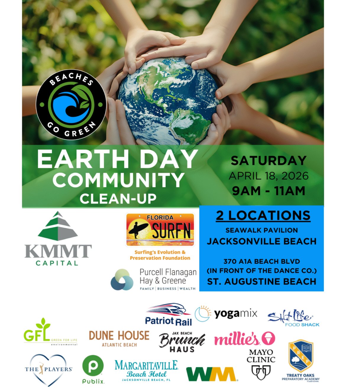Beaches Go Green is hosting their Annual Earth Day Cleanup at two locations: